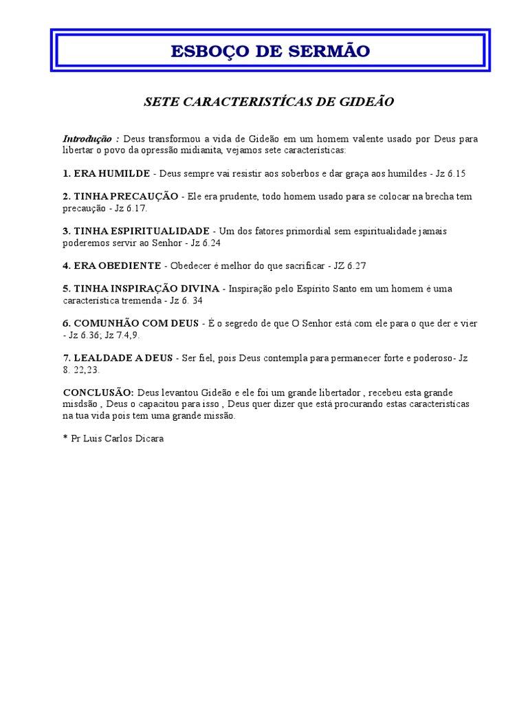 Esboço-Sete Caracteristicas de GIDEÃO